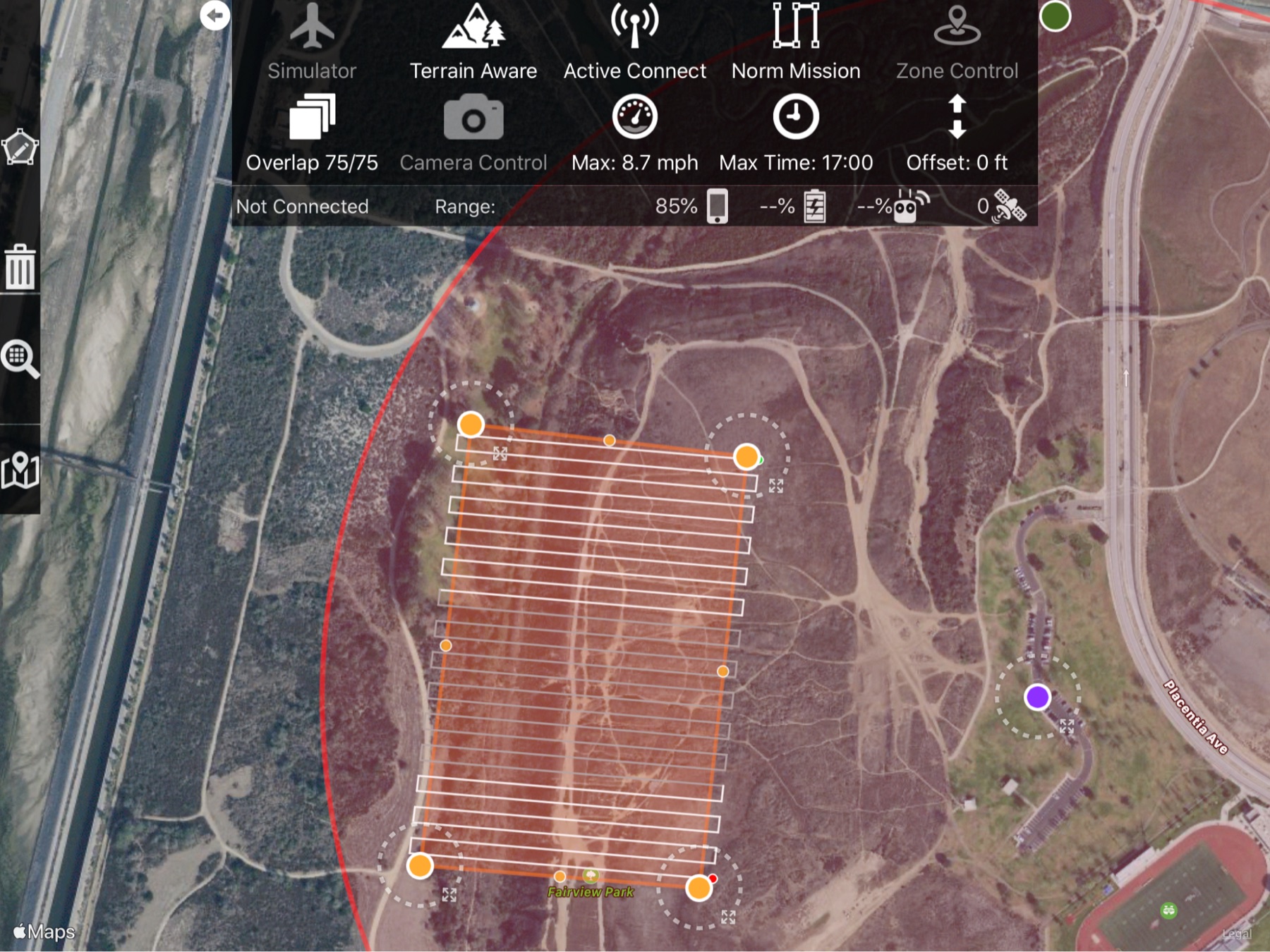 Once you are satisfied with your flight parameters, save the mission offline for upload to aircraft later.