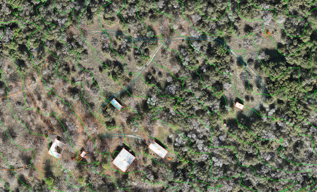 At Aerotas, drafting is what we call the process of converting all the high resolution files, like orthophotos and point clouds, into usable maps and CAD files. This often involves a handful of steps, ranging from the drafting of certain vector features like buildings or roads, to the blending of photogrammetric and lidar data into a single CAD file. Given the highly vegetated nature of this particular project, the drafting phase is not extremely time consuming. The majority of the time in drafting was spent cleaning lidar point cloud data and converting it into a more useful TIN surface. The orthophoto is converted into a CAD-friendly version using the ECW compression format, so that it can be more easily downloaded and shared. Finally, all of the data is converted into Civil3D .dwg format for final delivery.