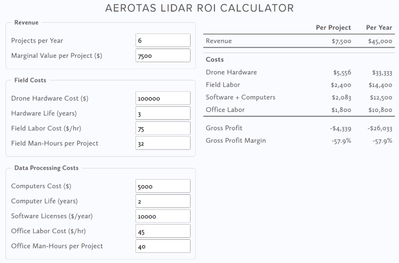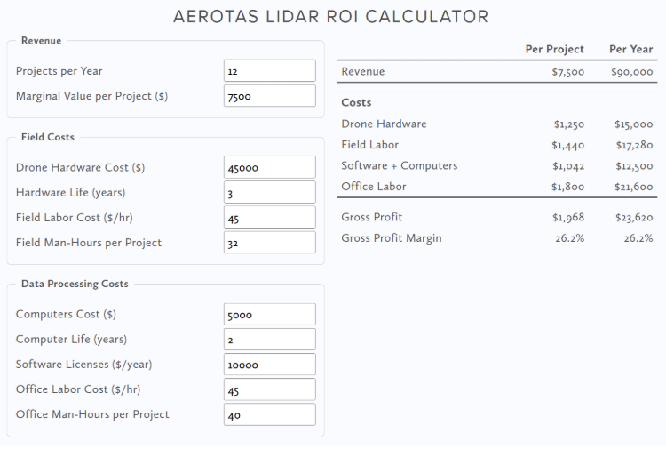 With a standard ~$45,000 total cost DJI L2 system, you can expect approximately $23,000 in gross profit per year.