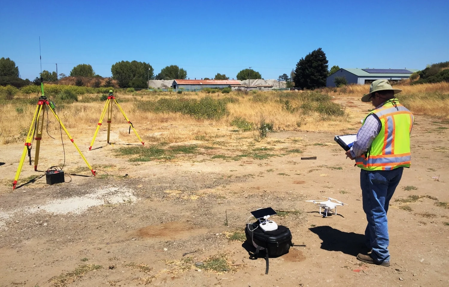 All projects will still require some ground work -- a drone is best thought of as one tool in a hybrid workflow. However, that fieldwork is reduced to setting ground control and collecting any shots that need to be tighter than 0.1’ accuracy or are not visible from the air -- work that can be completed by a solitary surveyor rather than a multi-person crew. The drone can be relied on for the appropriate portions of a job, then merged with data collected from field tools in post-processing, thereby still offering huge time savings.