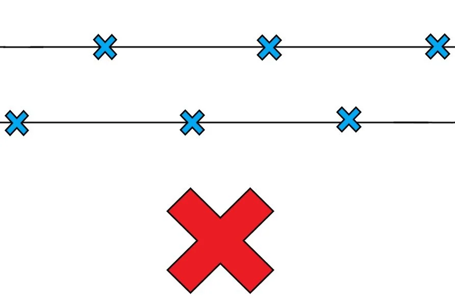 Spacing is also not absolutely set in stone. The only upper limit set in stone is the 1000’ space between GCPs for NON-RTK planning. You do NOT want to set a GCP pair any further than 1000’ from the next in any scenario. You can get away with +/- 100’ distance between pairs up to 1000’.